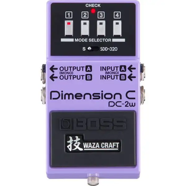 Introduced in 1985, the DC-2 Dimension C pedal brought the Dimension Dβs distinctive spatial effect to the BOSS compact pedal format. While the Dimension D was designed as a studio effect that supported either mono or stereo input sources, the DC-2 was specifically created for mono sources like guitar, and features a modified circuit that produces a Dimension effect with a slightly different tonal flavor.