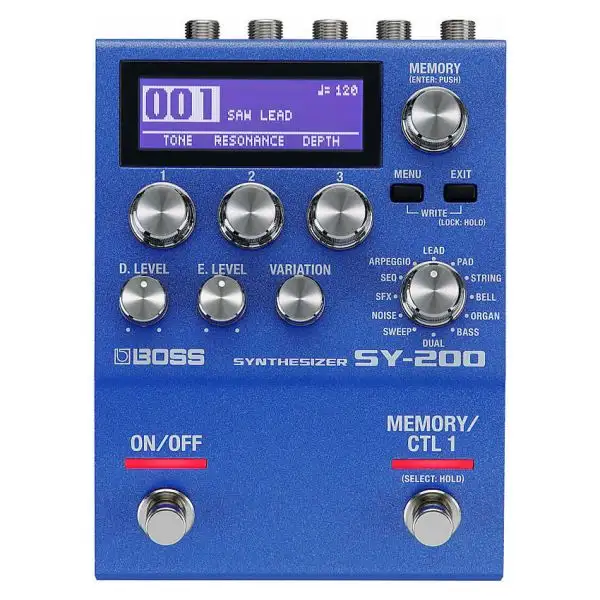 Offering a universe of rich, analog-inspired polyphonic tones in a small footprint, the Boss SY-200 makes it simple to weave BOSSβs expressive guitar and bass synth technology into all of your musical journeys. Building on the fun, instant-gratification experience of the acclaimed SY-1, this blue inspiration machine features an expanded sound set, more tone-shaping possibilities, and 128 memories for storing your sonic creations. Two onboard footswitches provide deep real-time performance control, and you can take things even further with external footswitches, an expression pedal, and MIDI.