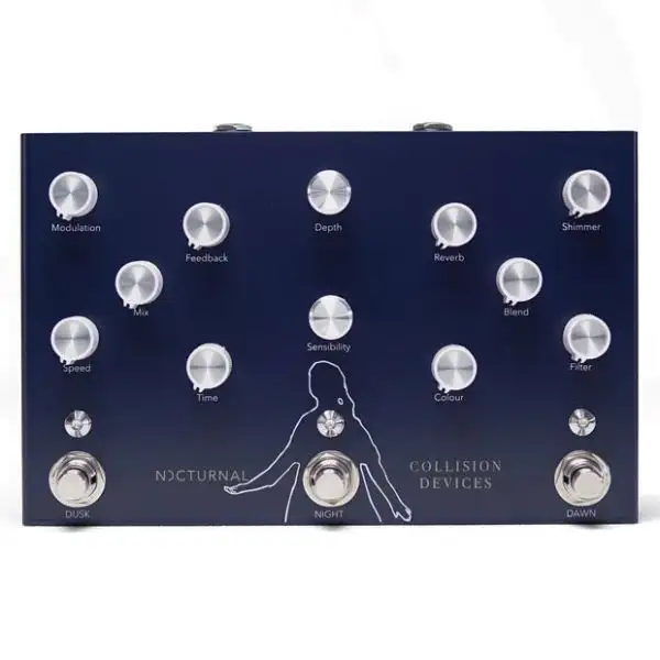 Looking for an ambient and textures creation box? As huge fans of cinematic atmospheric soundtracks and ambiences Collision Devices wanted to develop a pedal made for soundscapes creation – the Collision Devices Nocturnal. It’s composed of a Shimmer Reverb, a Dynamic Tremolo and a Modulated Delay. Each effect can be used together or separately and has its own momentary or trails function. Pass from the Dusk, through the Night to the Dawn with the Nocturnal.