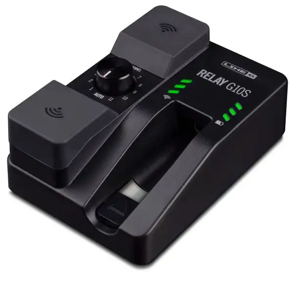 The Line 6 Relay G10S is a compact instrument wireless system that frees guitarists and bassists to move around the stage untethered. A member of the Relay Wireless family of products that are renowned for their reliability, the Relay G10S wireless system features a rugged metal stompbox receiver that easily integrates into a pedalboard, as well as simple plug-and-play operation. Thanks to its intelligent setup features, the unit immediately locates and locks onto the strongest available wireless frequency as soon as the transmitter is docked in the receiver.