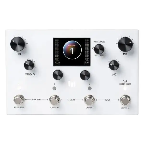 Stretch into the depths of your imagination and design whatever custom delay you can dream up. All of the processing elements and control signal modifiers within the LVX are discrete, and therefore can be connected exactly as you wish, giving this pedal almost limitless flexibility and customizability. Save your creative impulses in 99 preset locations, harbored within 33 banks. Every aspect of the LVXβs dual delay is highly configurable, with selectable note division for each side of the stereo output. The LVX is loaded with additional features such as a stereo looper that can record up to 60 seconds and an instant access tuner with configurable reference and output. Plus, the analog mix bus is digitally controlled so that your most intricate delay designs are executed precisely.