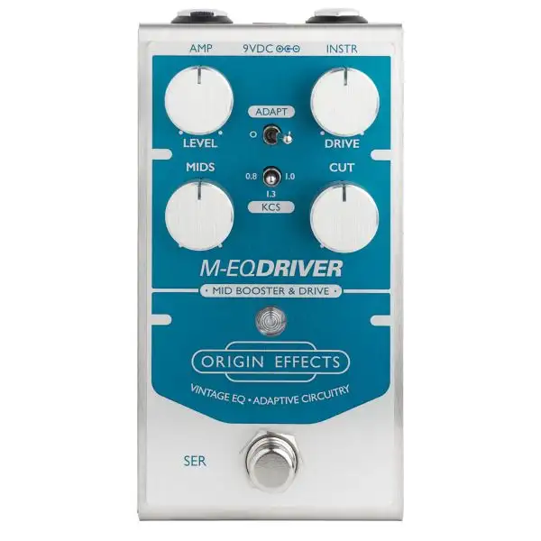 The Origin Effects M-EQ Driver is a mid booster & drive pedal, based on a vintage Pultec studio EQ. This unique pedal offers a range of mid-focused tones, from a subtle mid boost to thick, resonant overdrive and features the Adaptive Circuitry recently introduced on the Halcyon Green Overdrive. The M-EQ Driver is a pedal with a character all of its own and offers a new flavor of mid boost and drive.