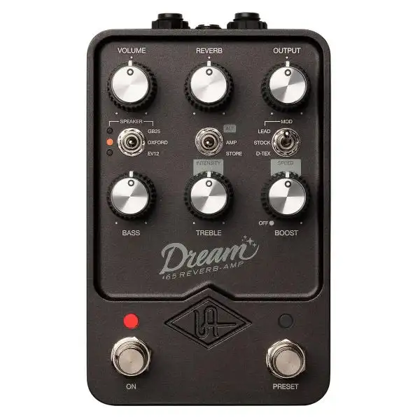 The UAFX Dream ’65 Pedal features six knobs, three switches and two footswitches for dialing in a wide range of tones. In addition to versatile “hot rod” amp and speaker mods, Dream ’65 Pedal faithfully captures the immersive sound of real tube-powered spring reverb and vibrato.