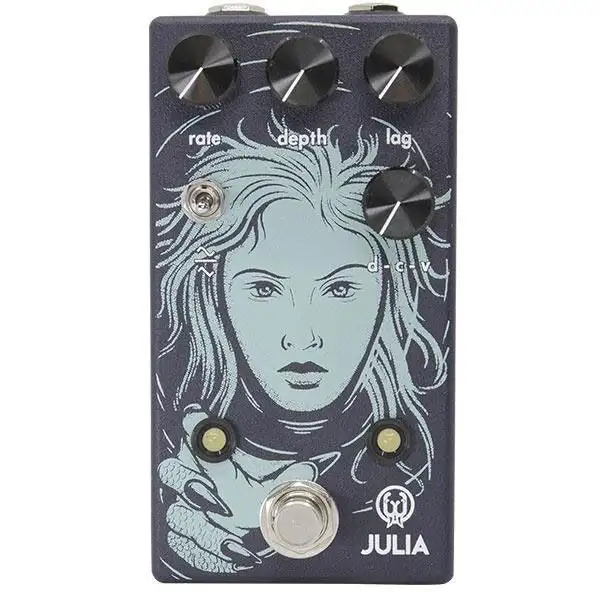 While most chorus/vibrato pedals offer a toggle to go between the two effects, Walrus have provided a knob to blend between Dry, Chorus, into Vibrato (labeled d-c-v on the pedal). The Dry-Chorus-Vibrato Blend changes the ratio of dry to wet signal sent to the output. At minimum, you will hear no effect. Set it to noon for equal parts dry and wet β the traditional chorus setting. Set it to maximum for 100% wet β the traditional vibrato setting. Explore the ground between minimum and noon for adding slight amounts of movement to your dry signal (also making the Julia great on bass guitar). Explore the ground between noon and maximum for all sorts of unheard chorus/vibrato combinations.