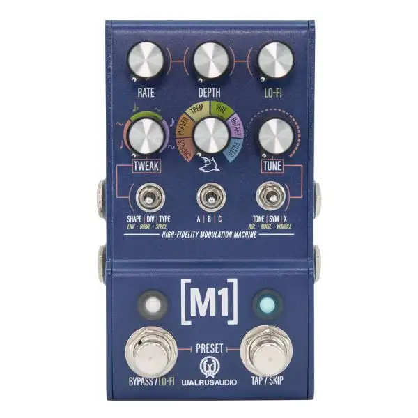The Walrus Audio MAKO Series: M1 is a powerful multi-function modulation machine with six customized, studio-quality programs: Chorus, Phaser, Tremolo, Vibrato, Rotary, and Filter. Each program has a wealth of options to tune, tweak, customize and then save to one of nine onboard presets. A sound explorers delight, the M1 features a dedicated lo-fi knob allowing you to mix various lo-fi parameters to every program. Add subtle movement and texture to float under your playing or make a massive statement with a thick swirling chorus to choppy panning tremolo. Write your sonic story in any style and genre with the M1 High-Fidelity Modulation Machine.