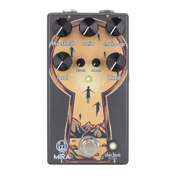 TheΒ Walrus Audio Mira Optical Compressor PedalΒ is a true bypass optical compressor offering studio-grade sound sculpting and sustain packed with controls youβd normally find on studio units. Use the Blend knob to mix in your compressed sound with your clean tone to maintain note clarity while offering increased sustain. Mira also offers in-depth control over Attack, Release, Ratio, and a Make-Up knob to help maintain unity levels after your signal has been compressed. For higher headroom, Mira runs internally at Β±15 VDC.